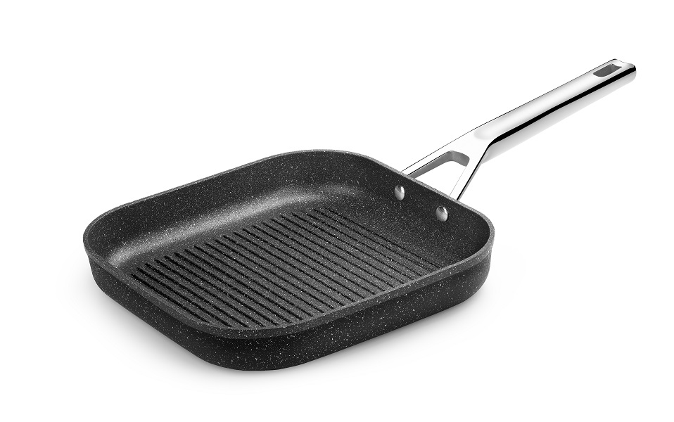 Сковорода 28*28 см. h=4,5 см. 2,2 л. алюм. рифлен. с антиприг. покрыт. (индукция) микрогриль Mineral BRA&Monix /1/
