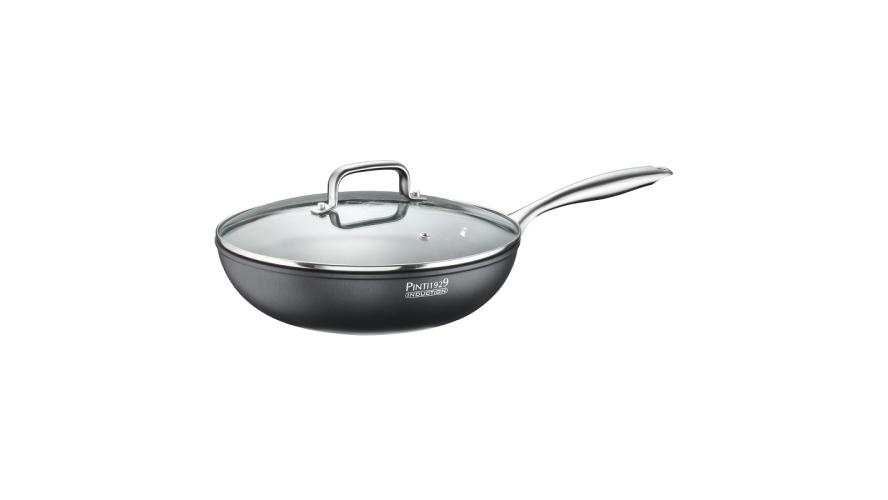 Сковорода Pintinox c антипригарным покрытием QuanTanium® от Whitford. Сковорода глубокая в комплекте со стеклянной крышкой.