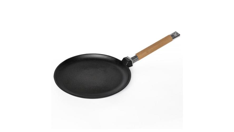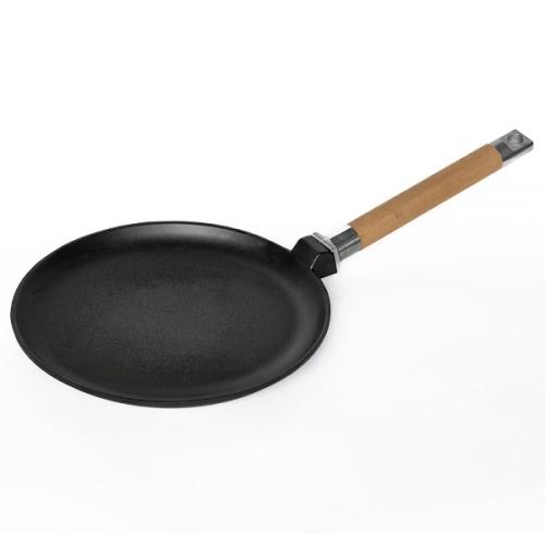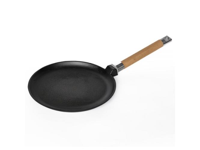 Сковорода для блинов d=24 см. h=2 см. чугун, со съем дерев. ручкой /1/6/