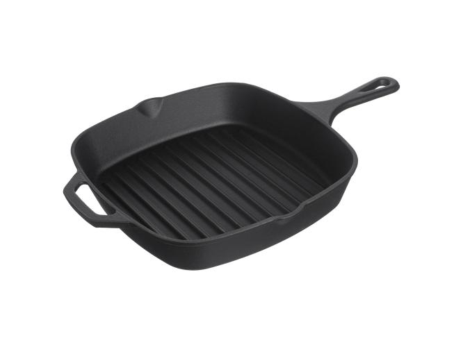 Сковорода-гриль 24*24 см. h=5 см. 2 л. черная, чугун. /1/