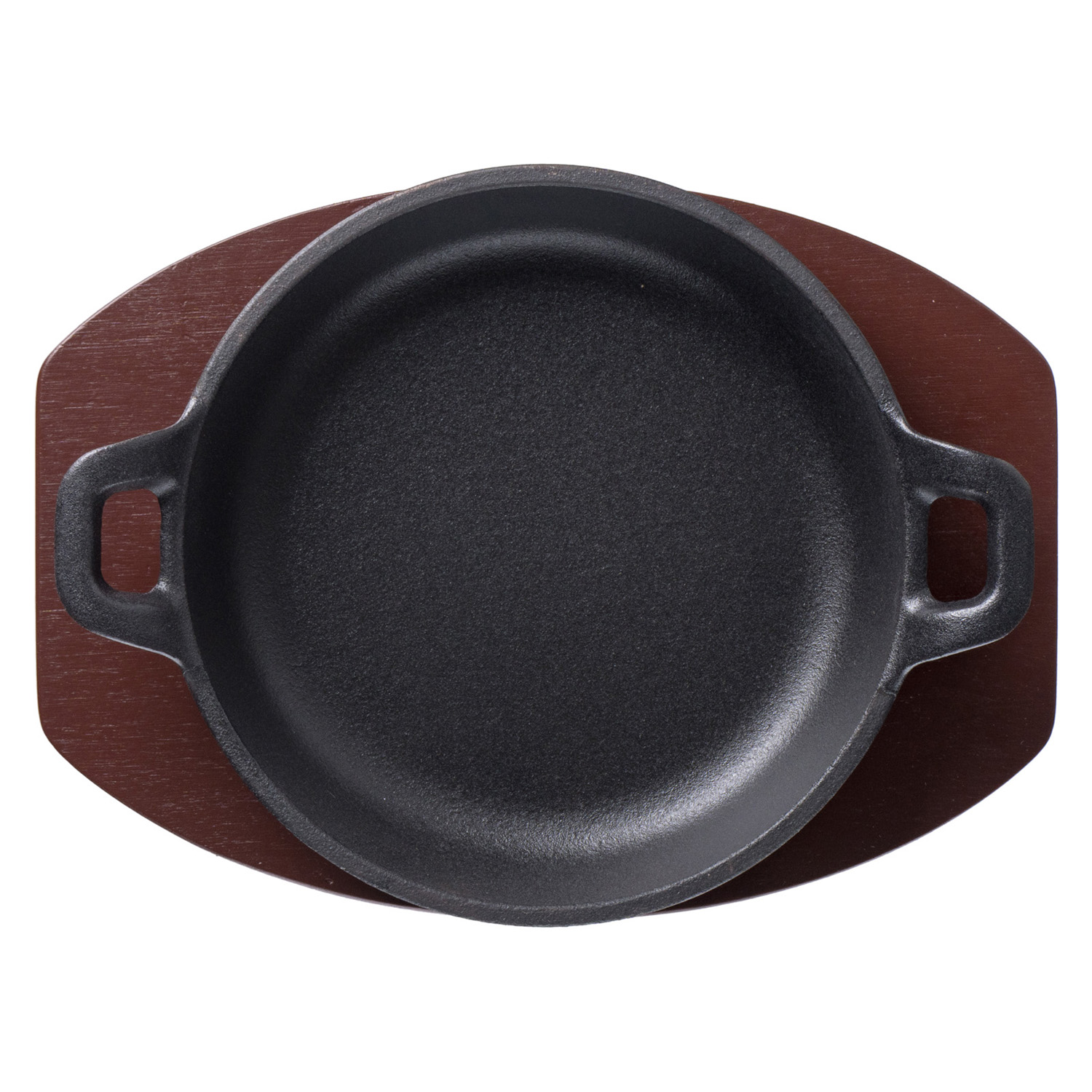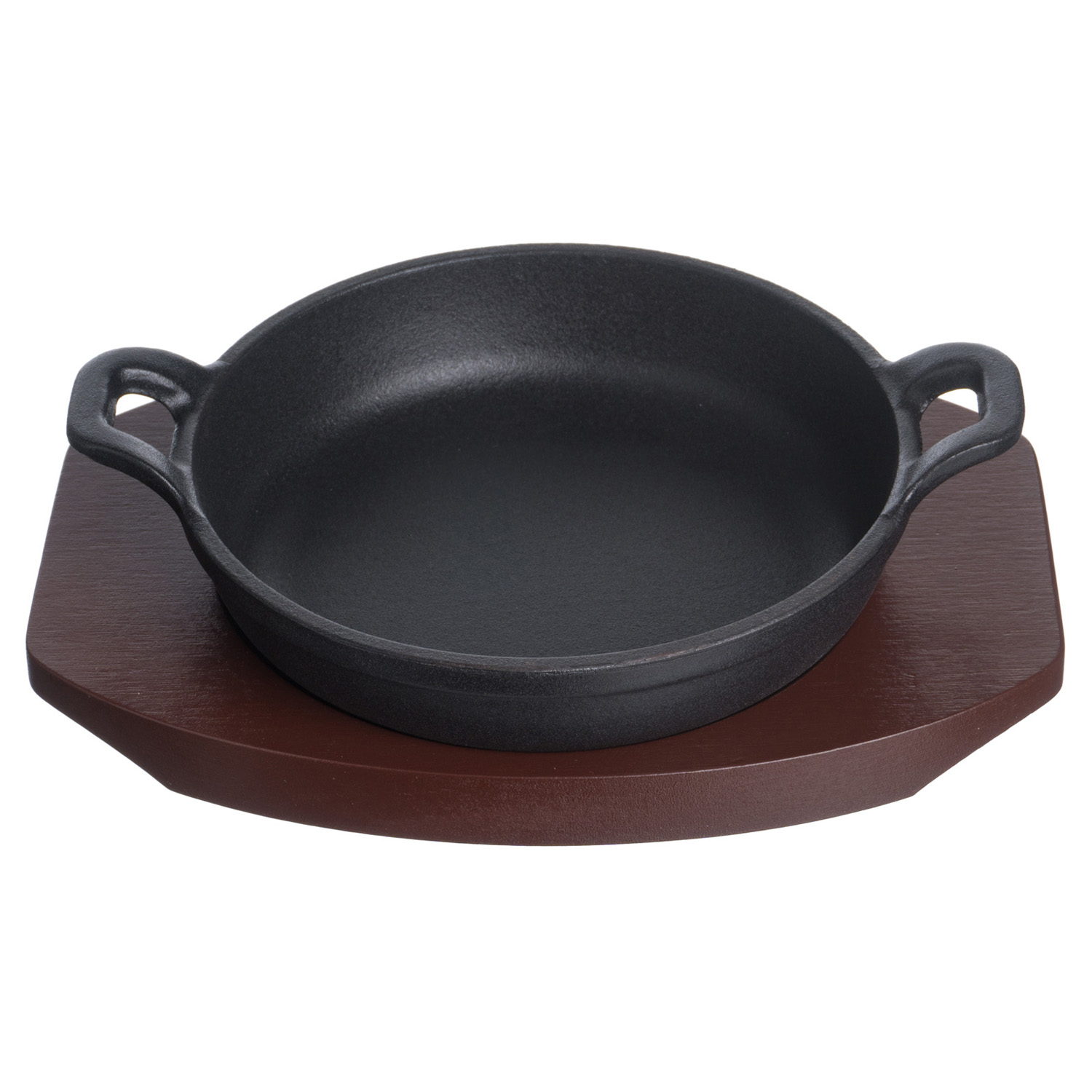 Сковорода порц. d=14 см. h=4,5 см. 0,35 л. чугун. с 2 ручками на дерев. подставке /1/