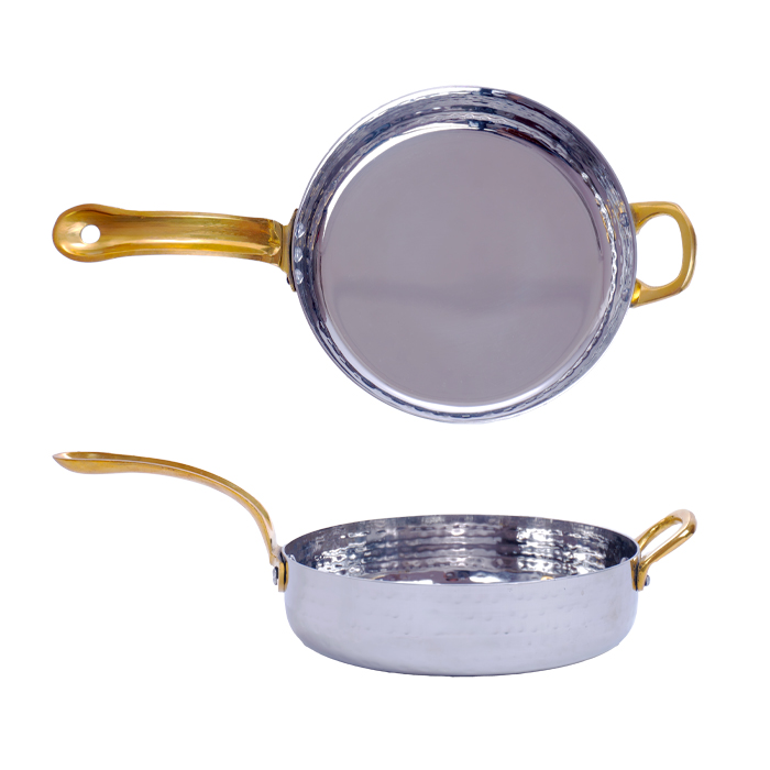Сковорода порц. d=15,5 см. h=4 см. 0,7 л. нерж. глубокая с 2 ручками латунь MGsteel /1/36/