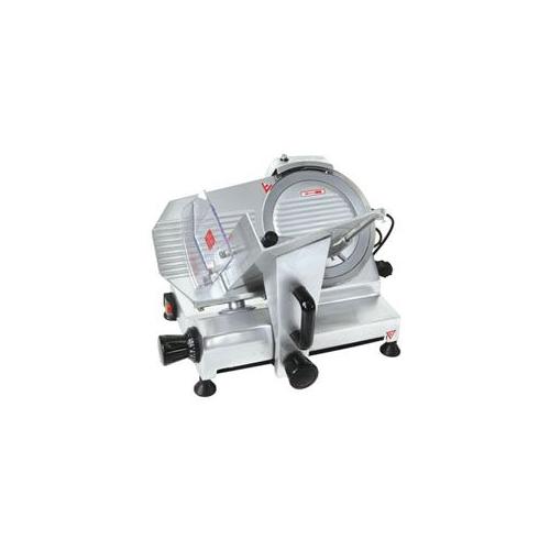 Гастрономическая машина полуавтоматическая, диаметр ножа 220 мм, толщина среза 0.2 - 15 мм, встроенное затачивающее устройство, материал корпуса - алюминий.
