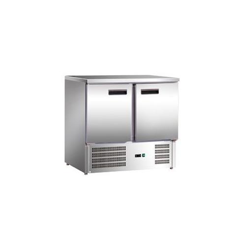 Холодильник-рабочий стол "мини", экономичная версия, +2...+8оС, 260 л, допустимая загрузка 50 кг, 2 дверцы, 2 полки-решетки GN 1/1 с направляющими, столешница без борта, материал корпуса снаружи - нерж.сталь 304/430, внутри - алюминий"