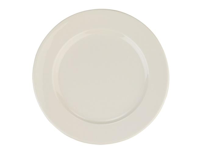 Тарелка белого цвета со сливочным оттенком.