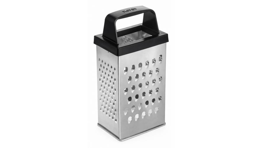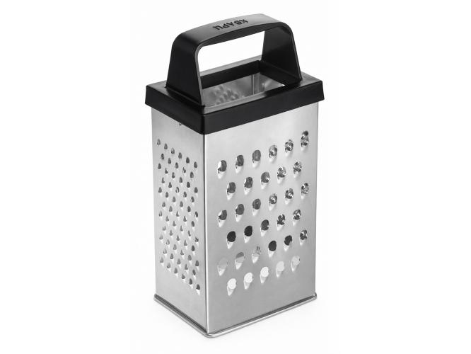 Четырехгранная терка из белой жести оснащена удобной ручкой.