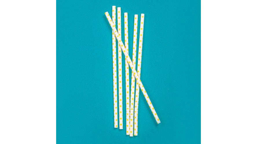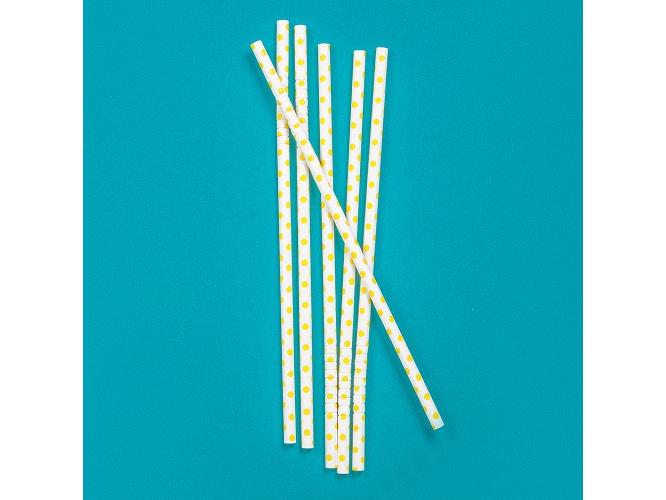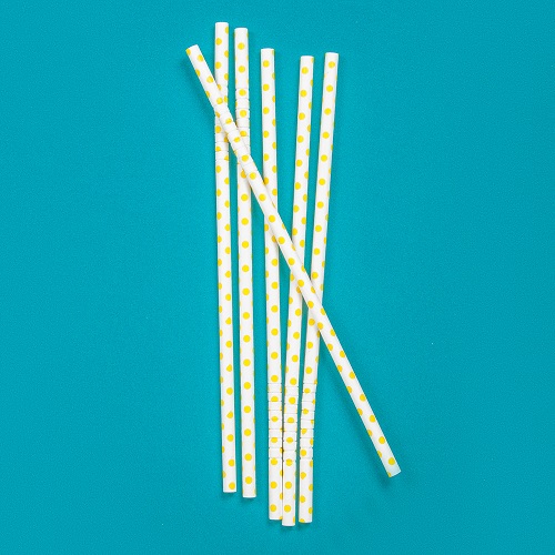 Трубочки кокт. 0,6*23 см. 25 шт/уп. бумажные, с изгибом, белые с желтыми шарами /1/40/ АКЦИЯ