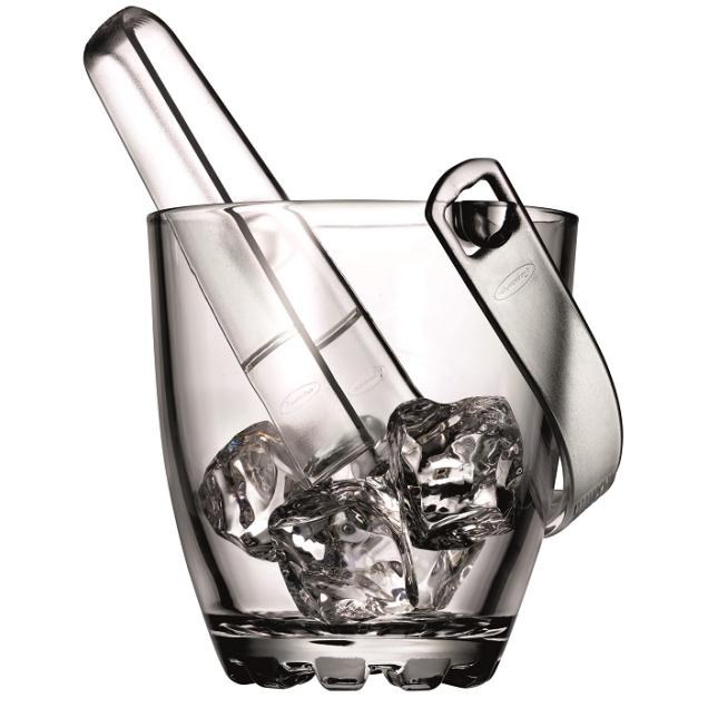 В комплекте есть пластиковые щипцы для порционной подачи льда. Высота ведра всего 13 см, оно не займет много места на столе.